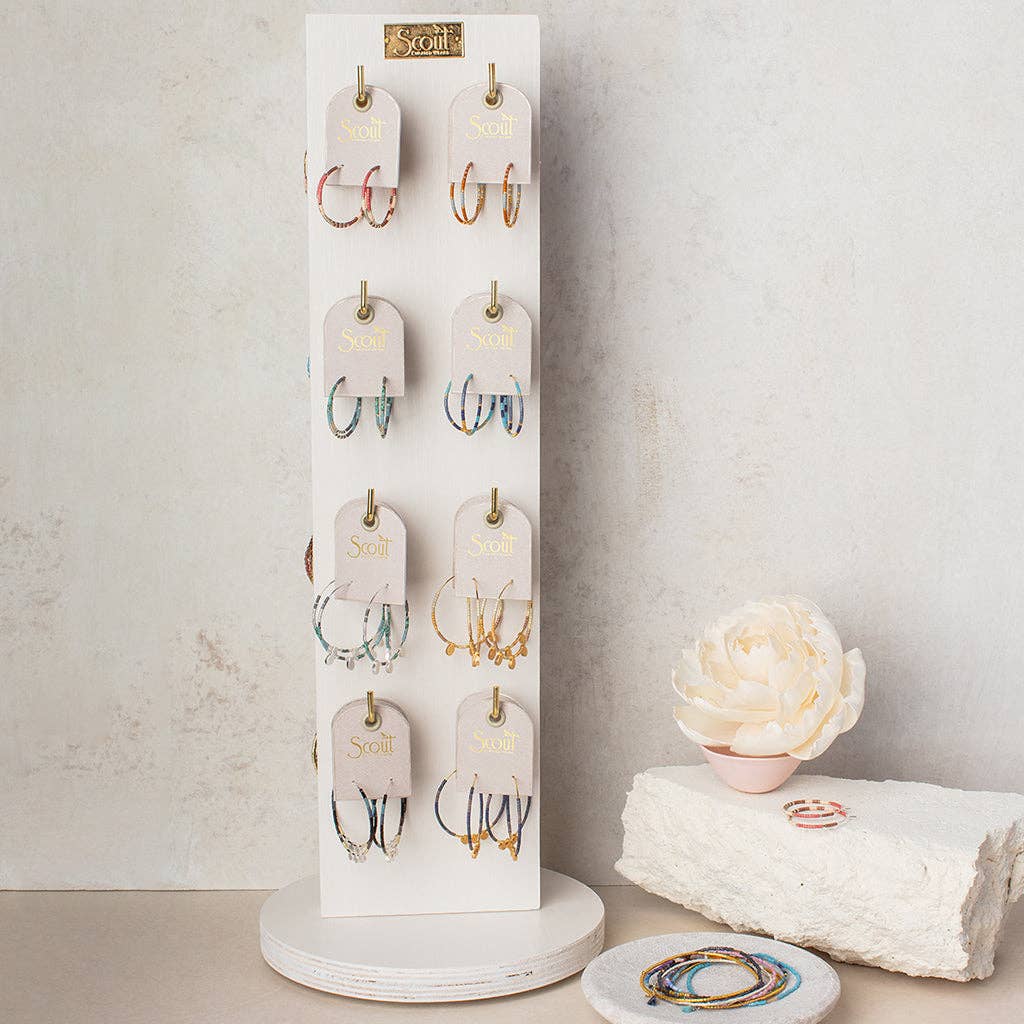 Sleek Miyuki Delica beads create vibrant pieces in colorful hues. Mix and match bracelet stacks and earrings for a look that is fun and modern.