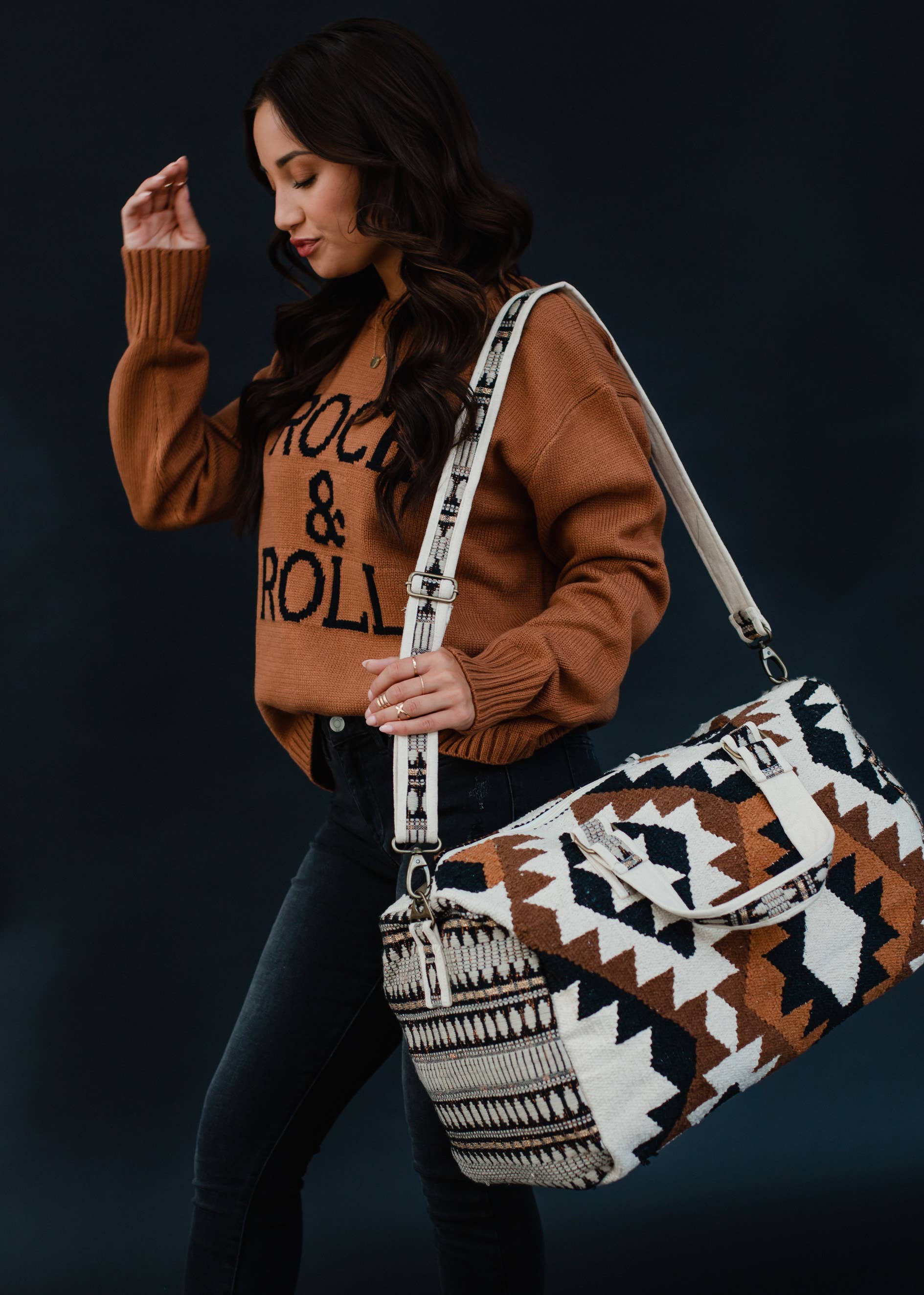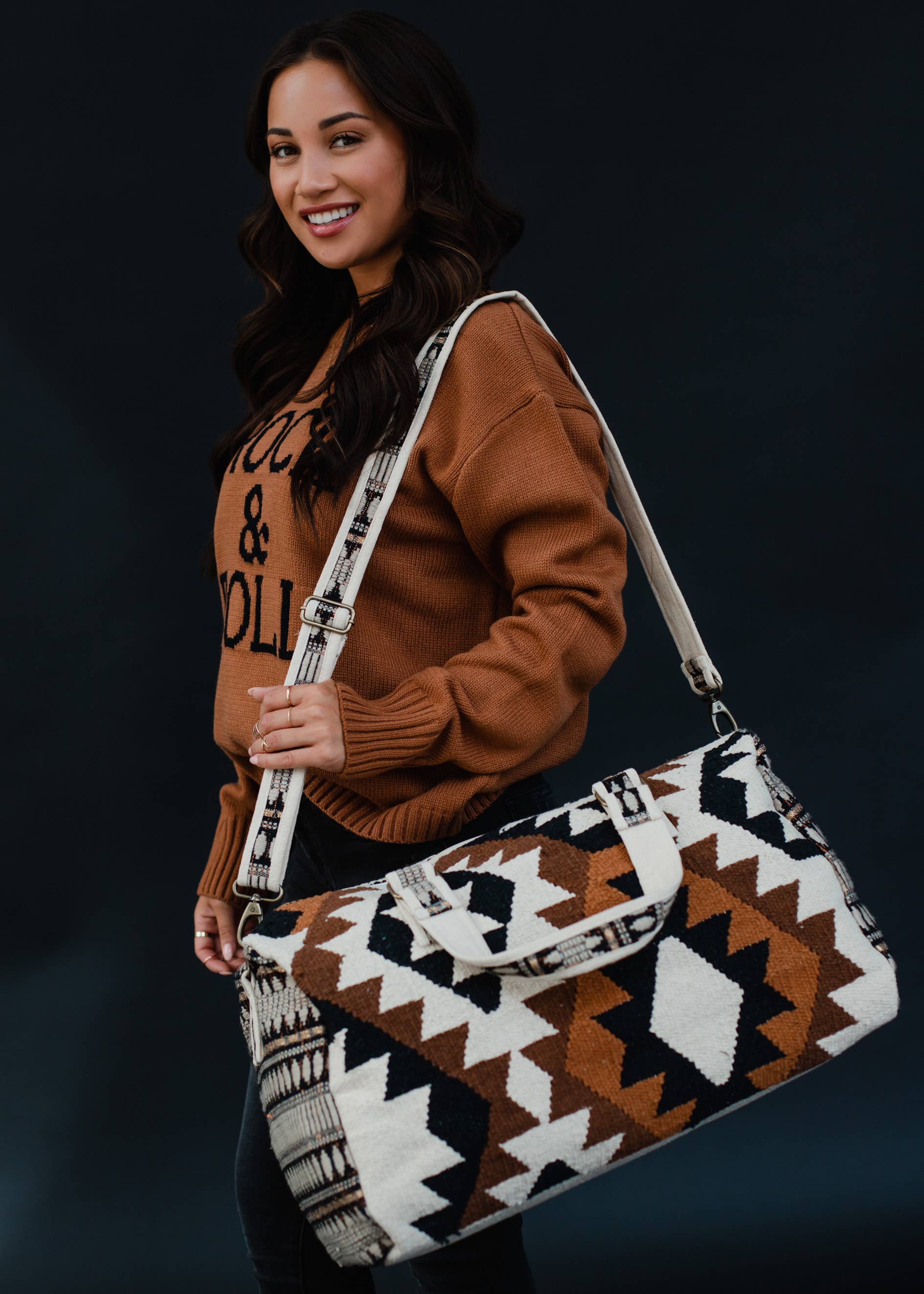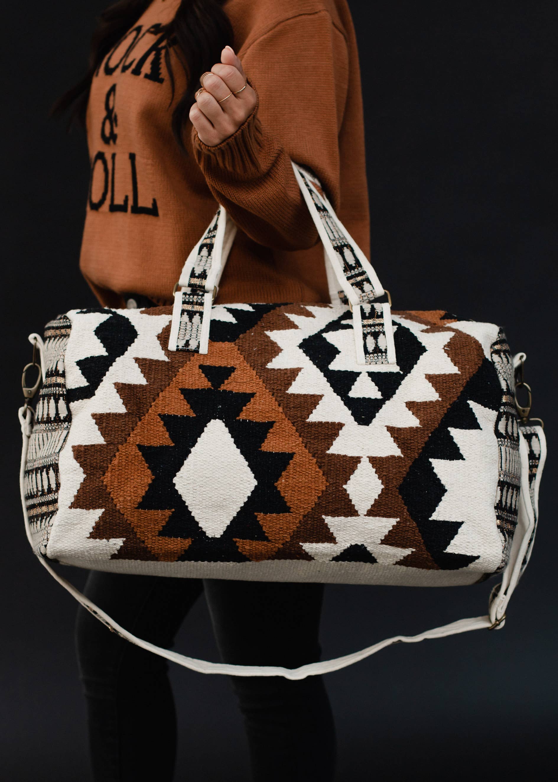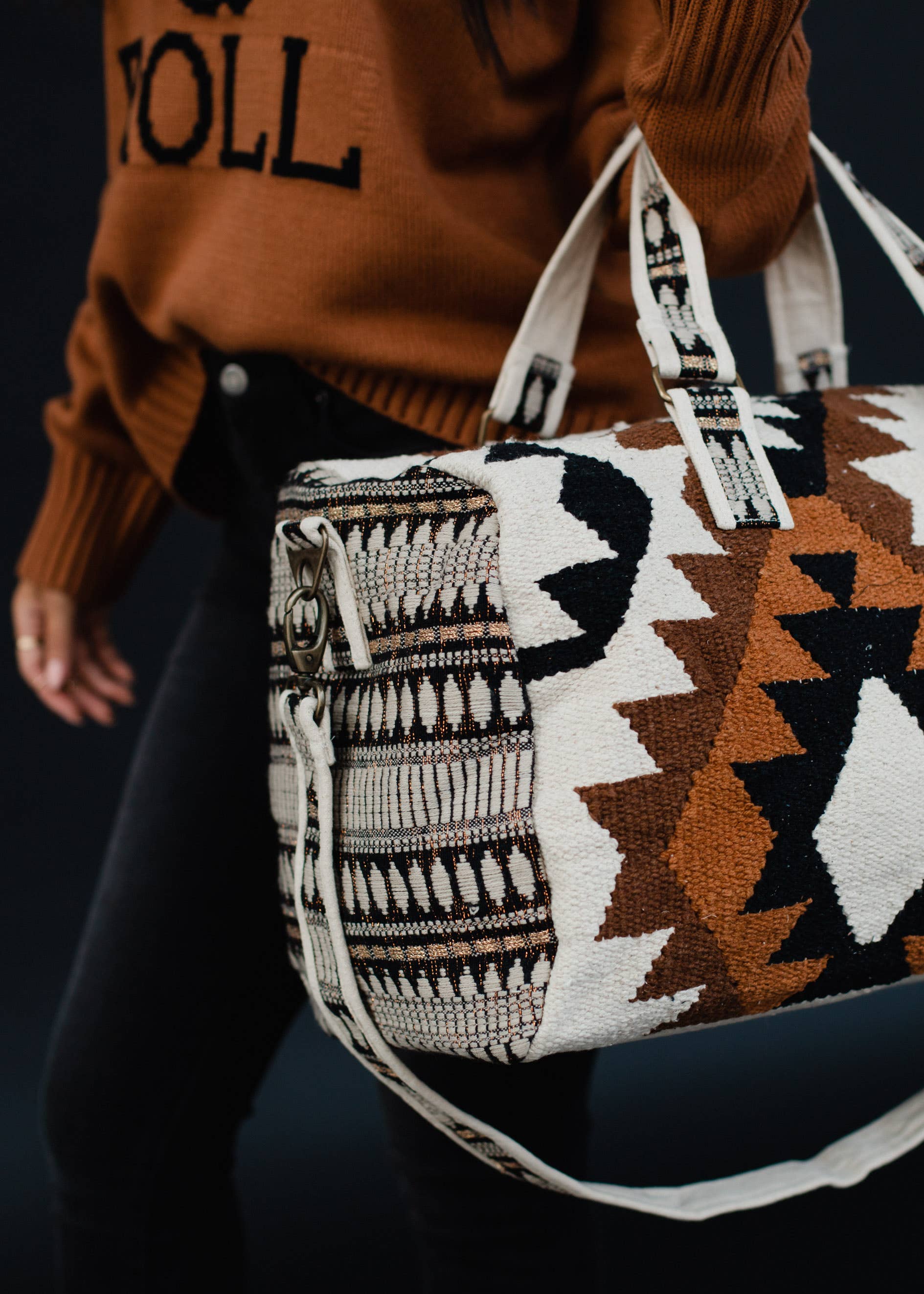 Cream, Black, Brown & Tan Aztec Duffel