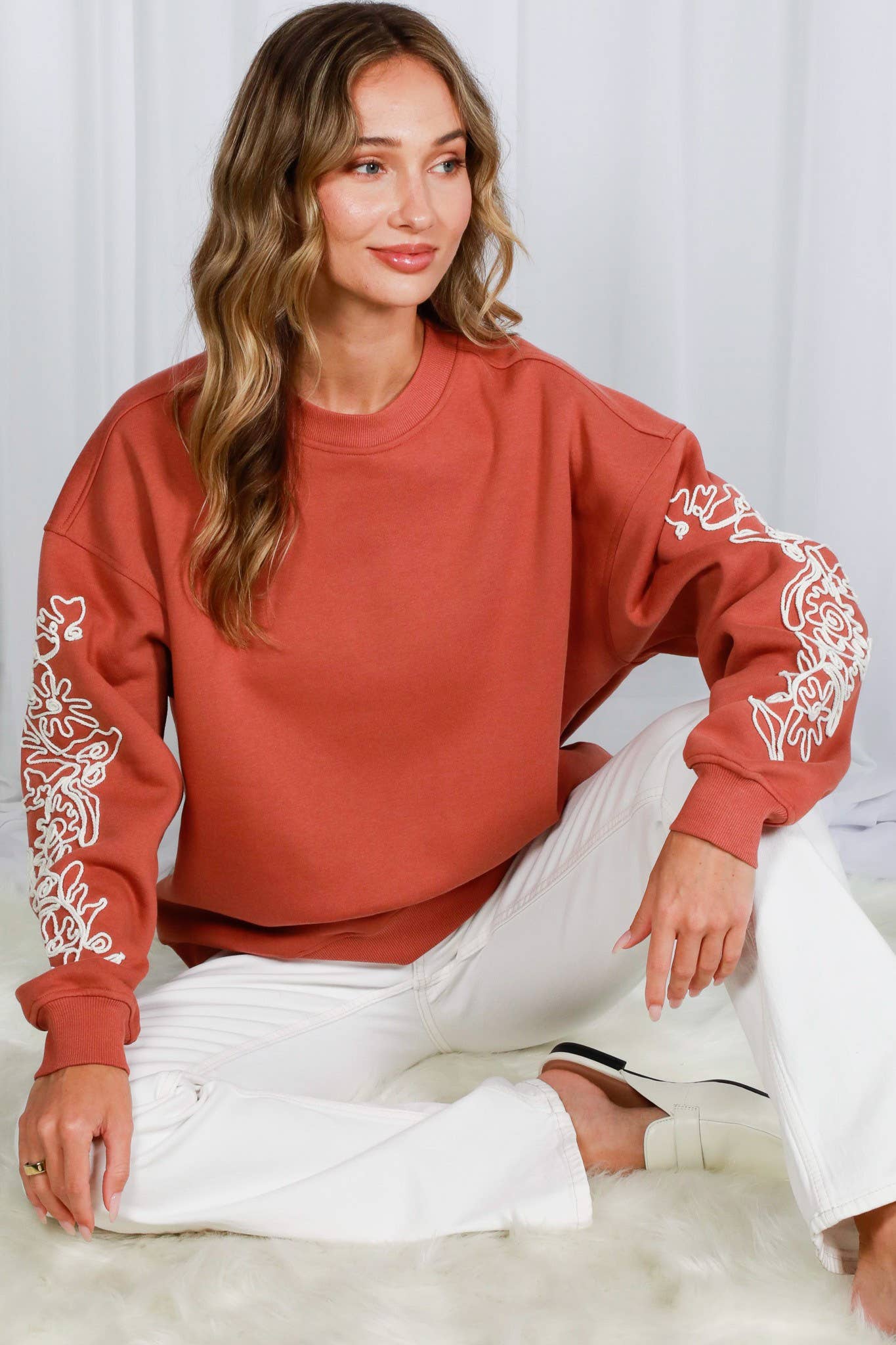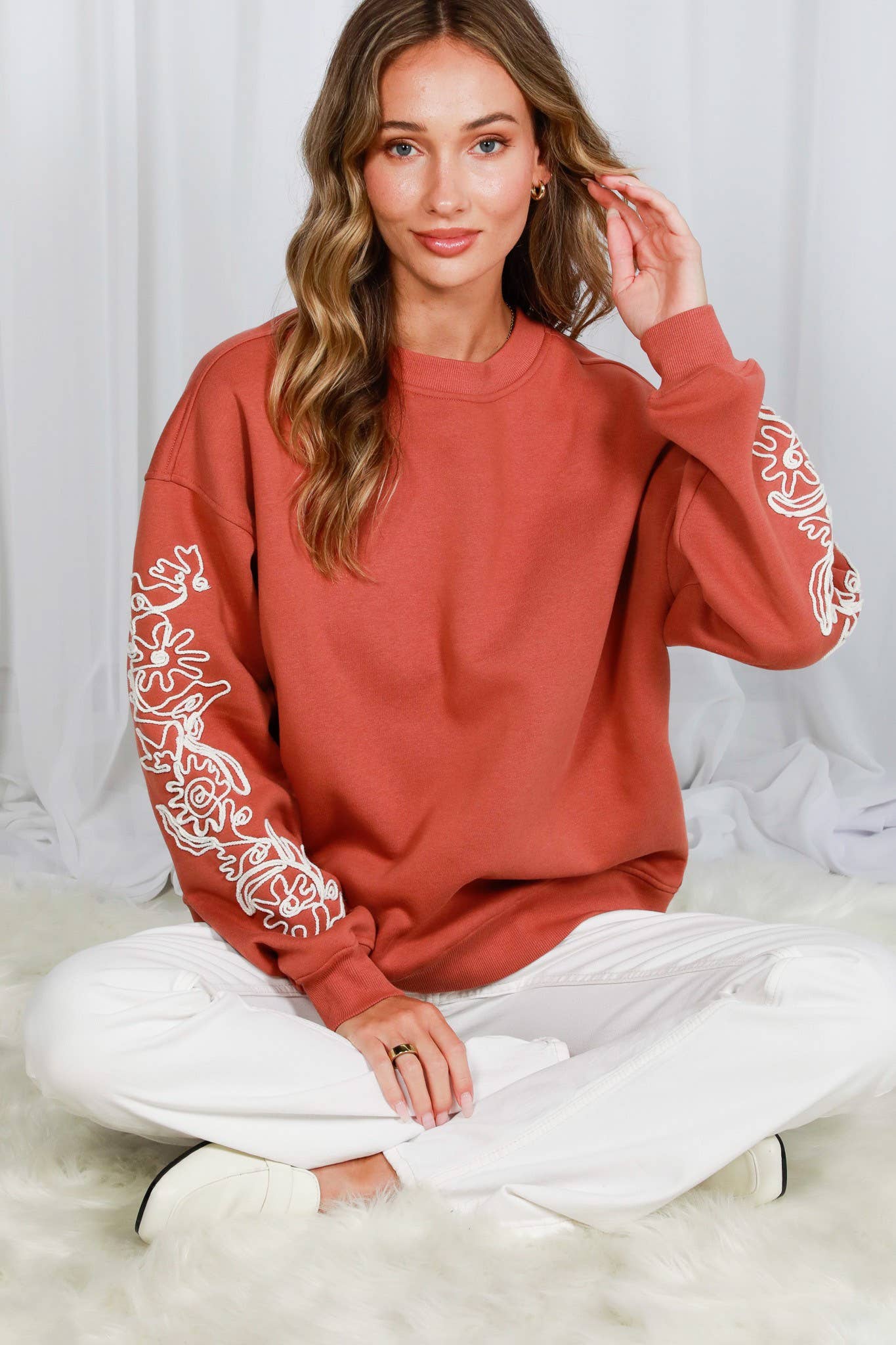 Drop shoulder, with floral embroidered detail, this sweatshirt is so cute and soft. Pair with shorts or jeans, it's an easy throw-on for running errands, dropping kids off or a date night.