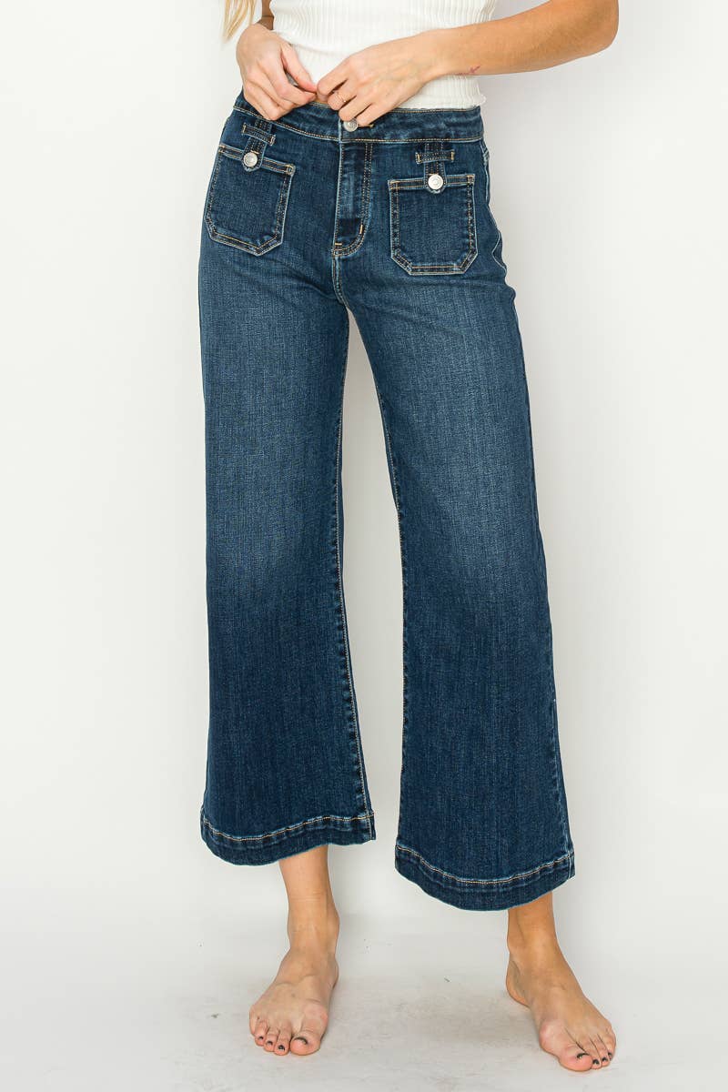 High Rise Crop Palazzo Jeans (Dark Wash)