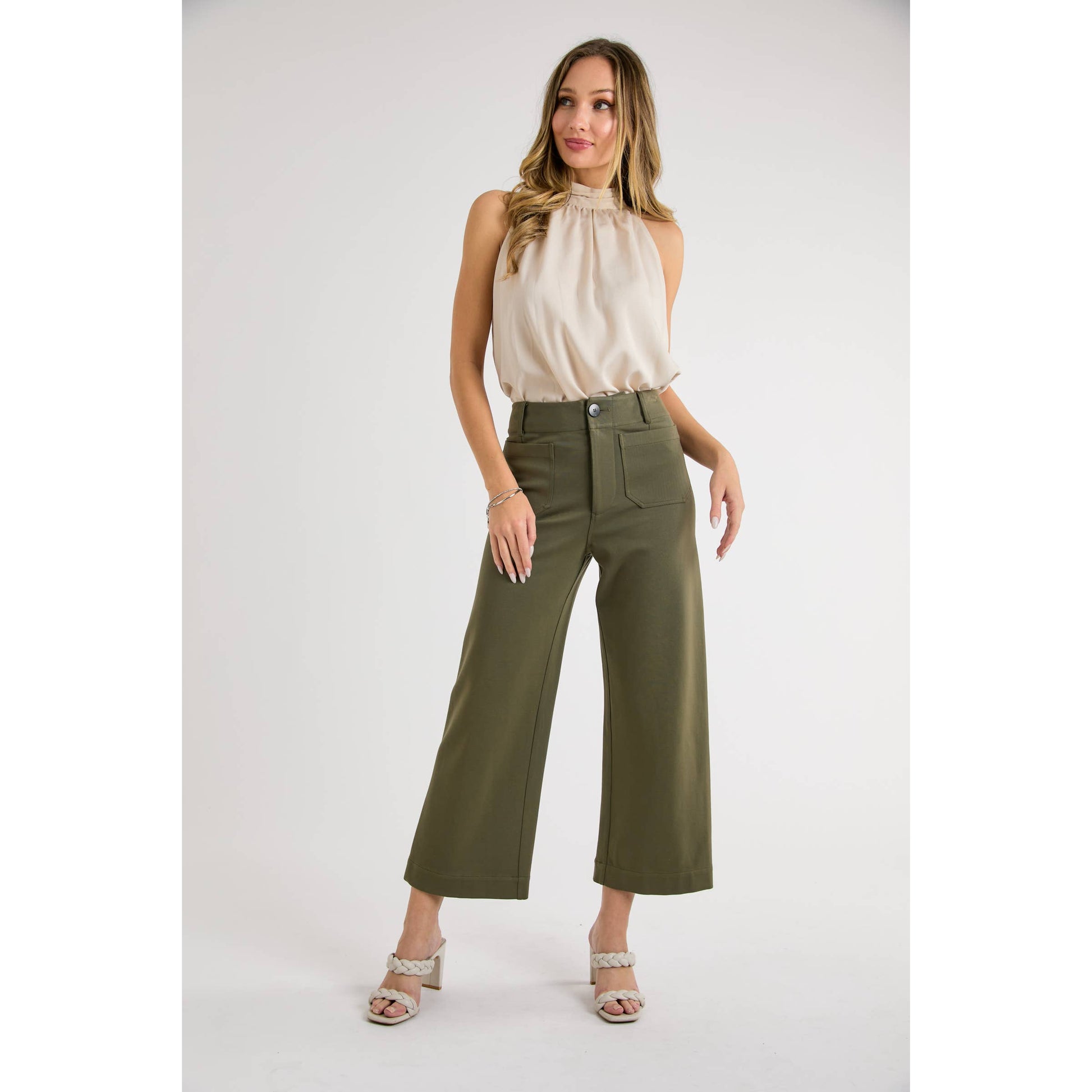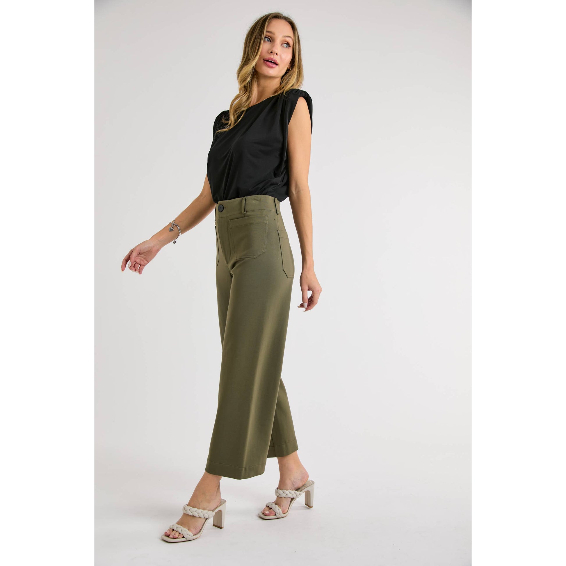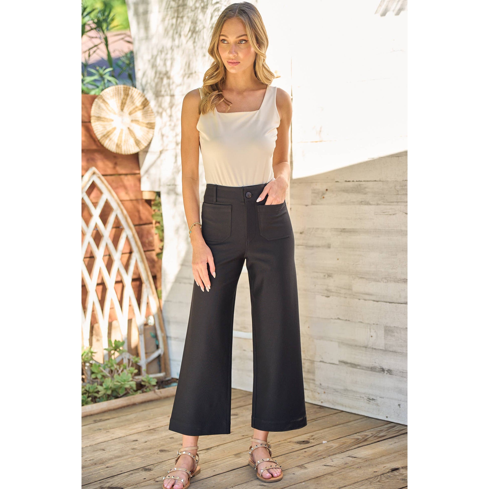 Stretchy knit pants with a perfect front pocket, these cropped pants are pure perfection for work, a girl's night out or throwing on sandals and running errands.
