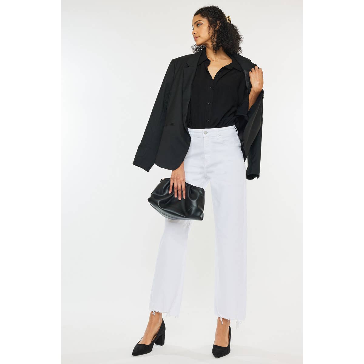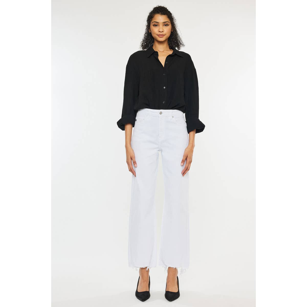 Expertly crafted from 99% cotton and 1% spandex, these White KanCan Denim Jeans feature a high-rise, slim wide-leg fit for ultimate comfort and style. With a clean white color wash and 5-pocket style, these jeans are finished with a perfect stretch.