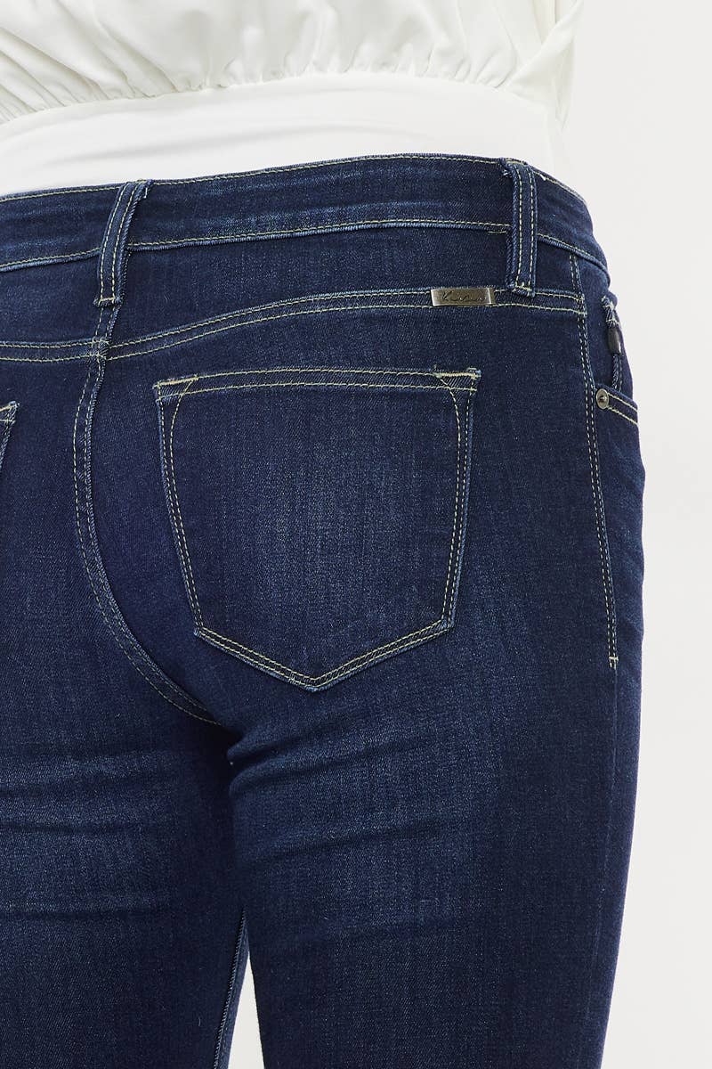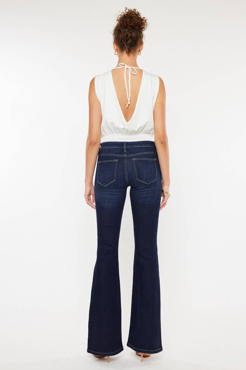 Mid-rise, dark jeans with a modern flare, these jeans are perfect for a polished look.