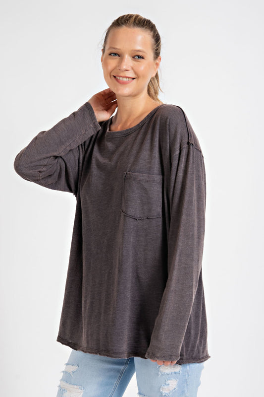 Rae Mode Mineral Washed Round Neck Long Sleeve Top