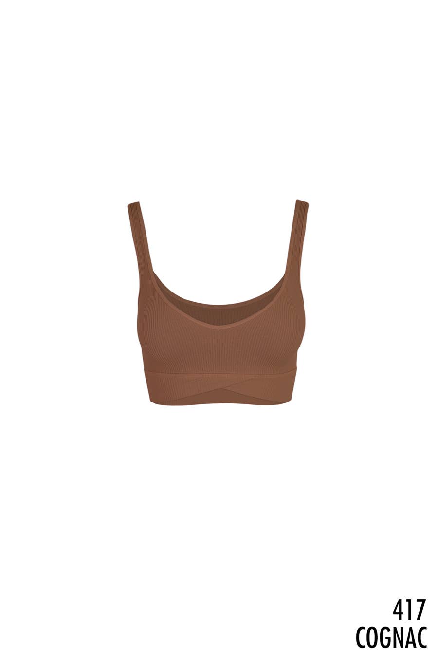 Classic ribbed knit with a feminine twist, the waistband features a flattering crossover detail.