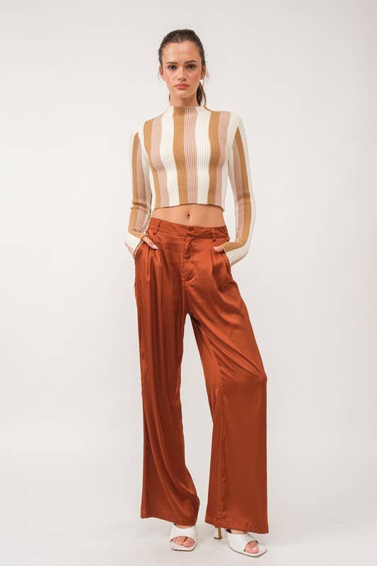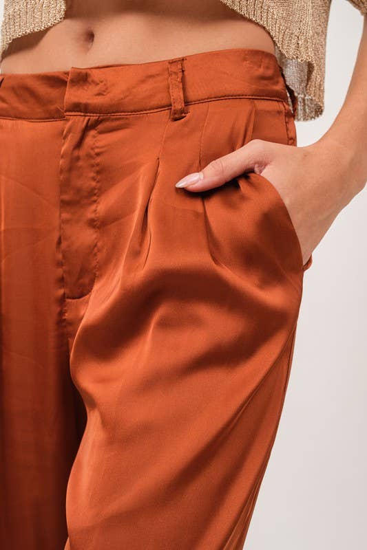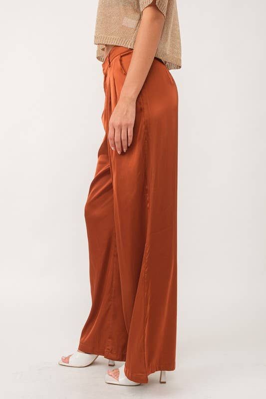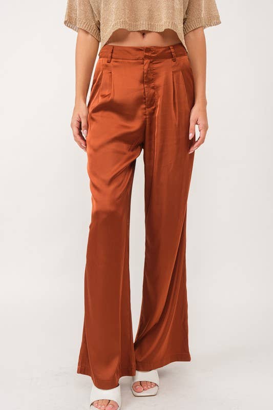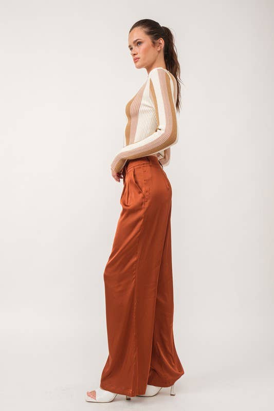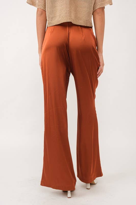 Chloe Satin Wide Pants with a little bit of stretch (5% Spandex). Paired with our beautiful velvet bodysuit or a simple tee, these pants will elevate any outfit.