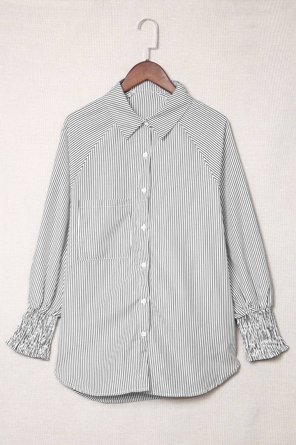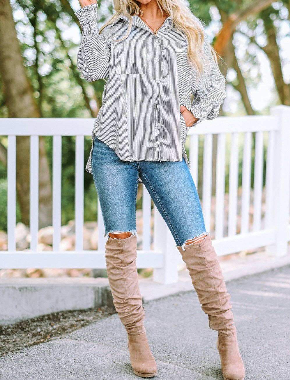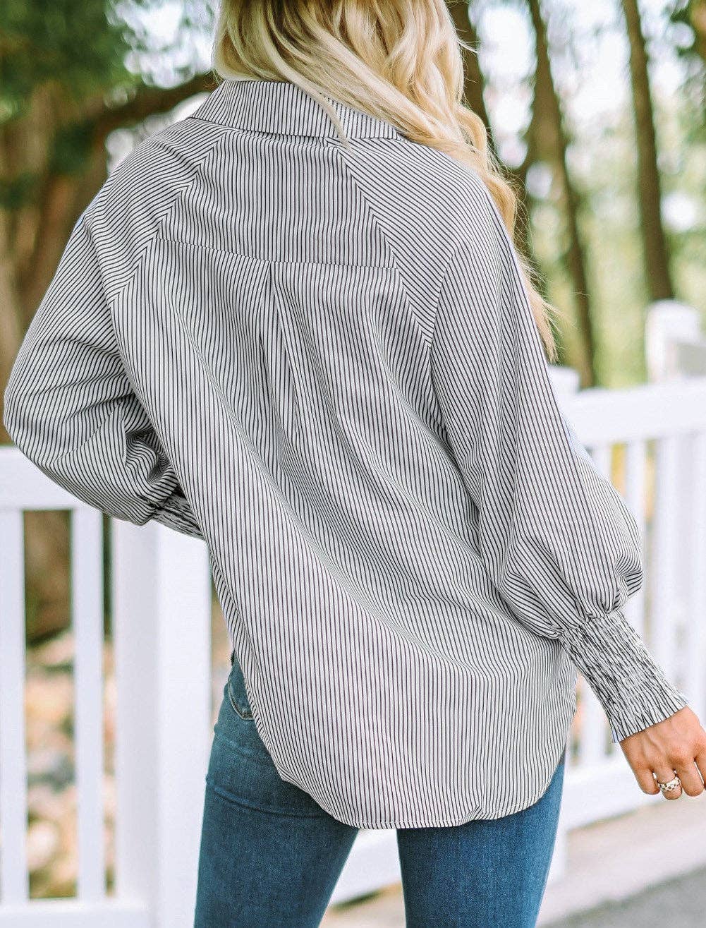 You will adore this relaxed comfortable top with smocked sleeve cuffs. It is a classic striped piece that is great for everyday wear and offers plenty of versatility. Paired with our cute Kancan white jeans or throw on our Sneak Peak Denim shorts for an effortless look.