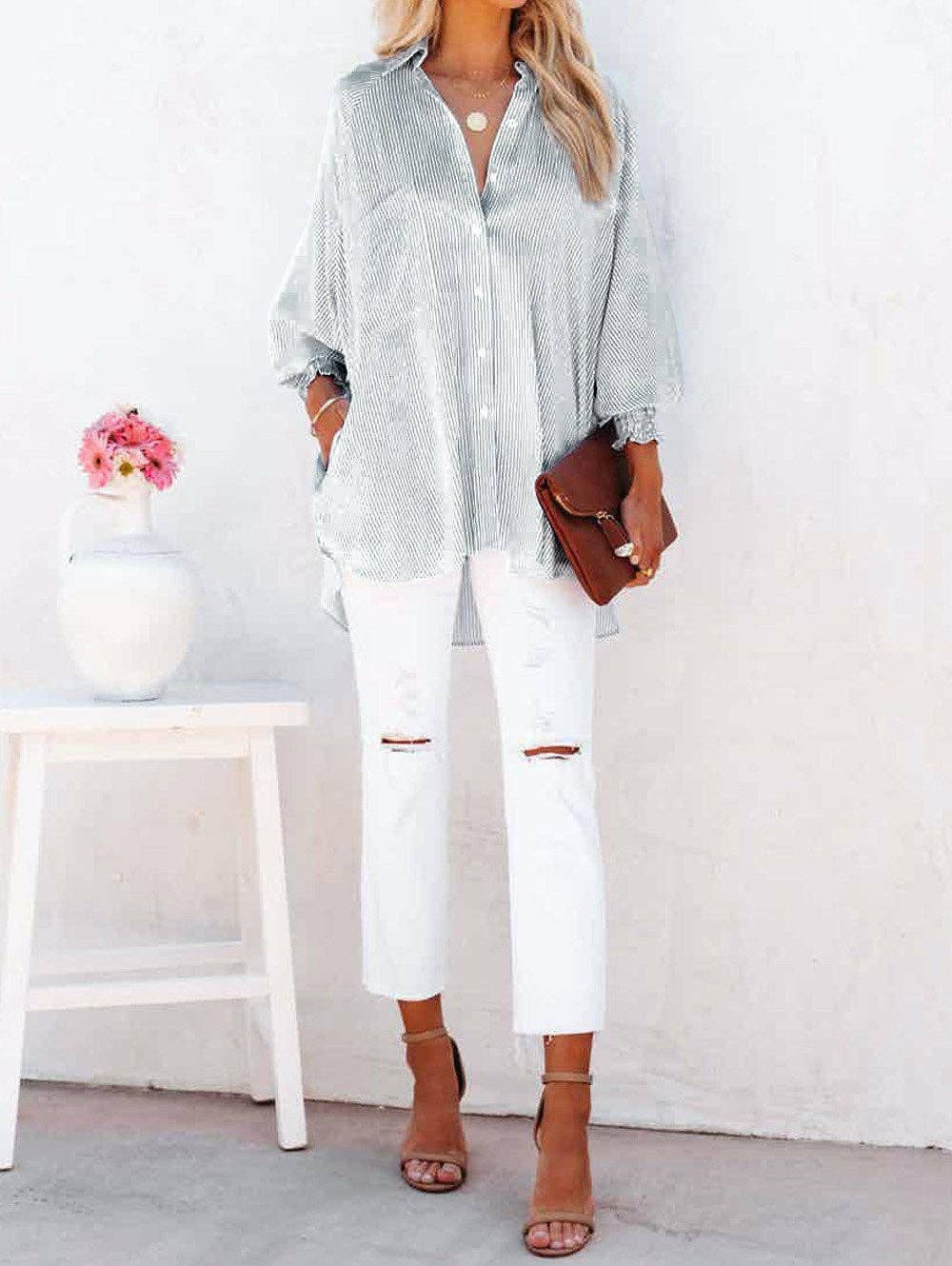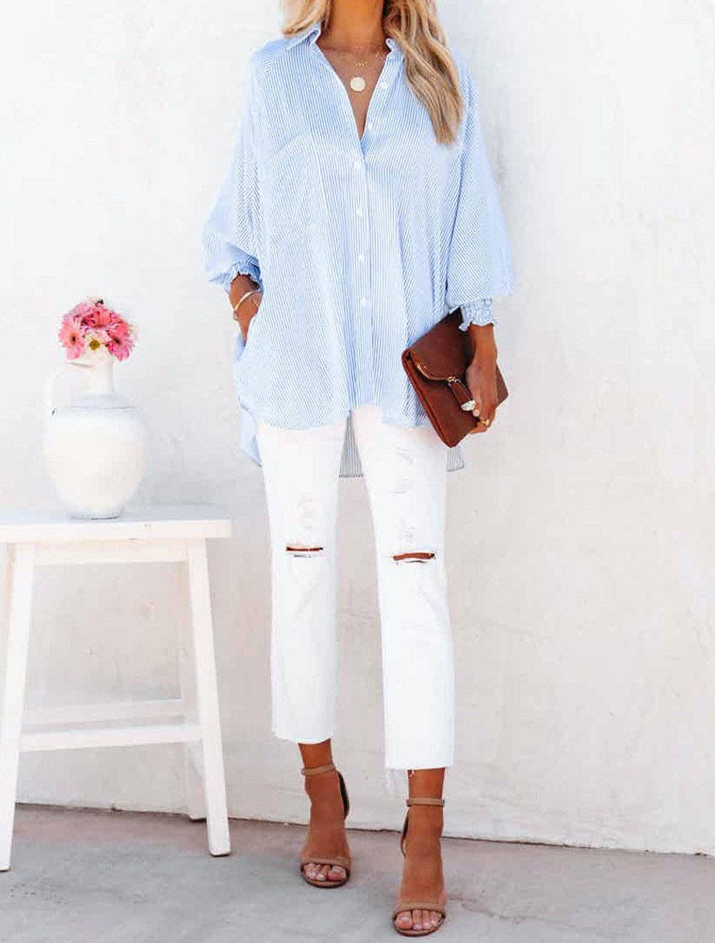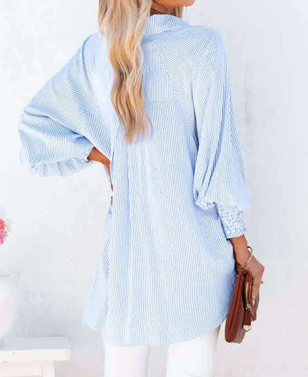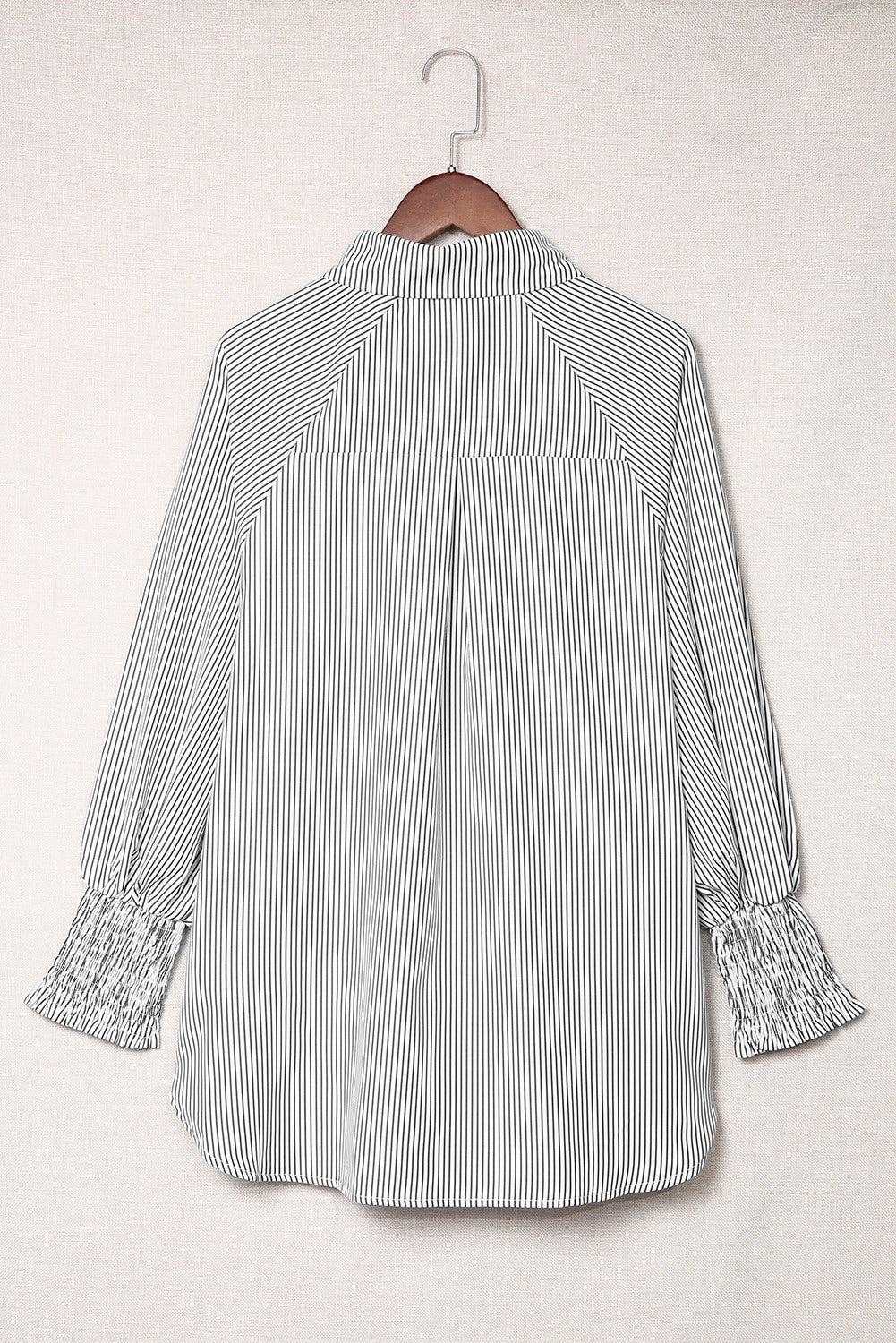 You will adore this relaxed comfortable top with smocked sleeve cuffs. It is a classic striped piece that is great for everyday wear and offers plenty of versatility. Paired with our cute Kancan white jeans or throw on our Sneak Peak Denim shorts for an effortless look.