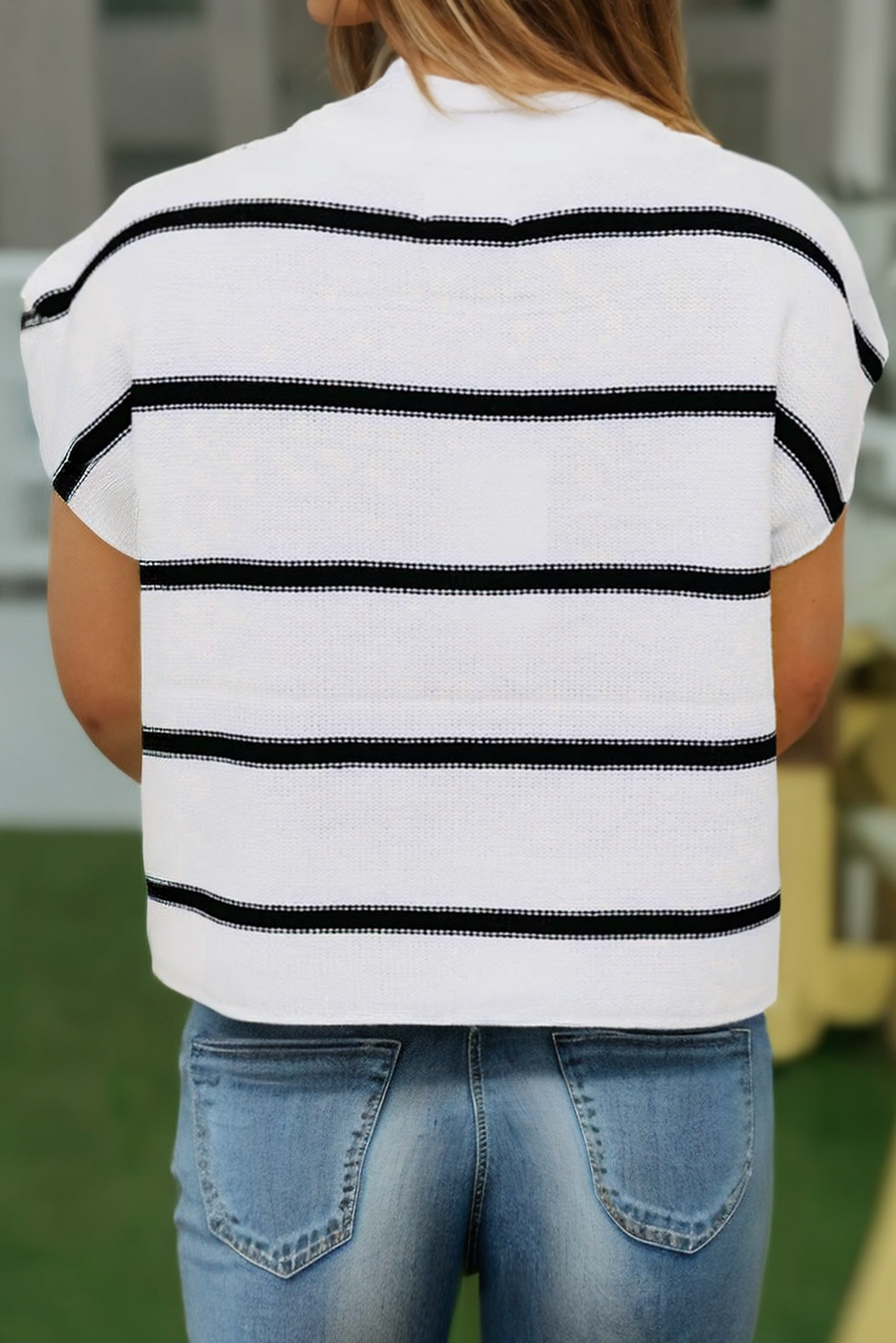 Introducing our White Striped Batwing Sleeve Sweater Tee.